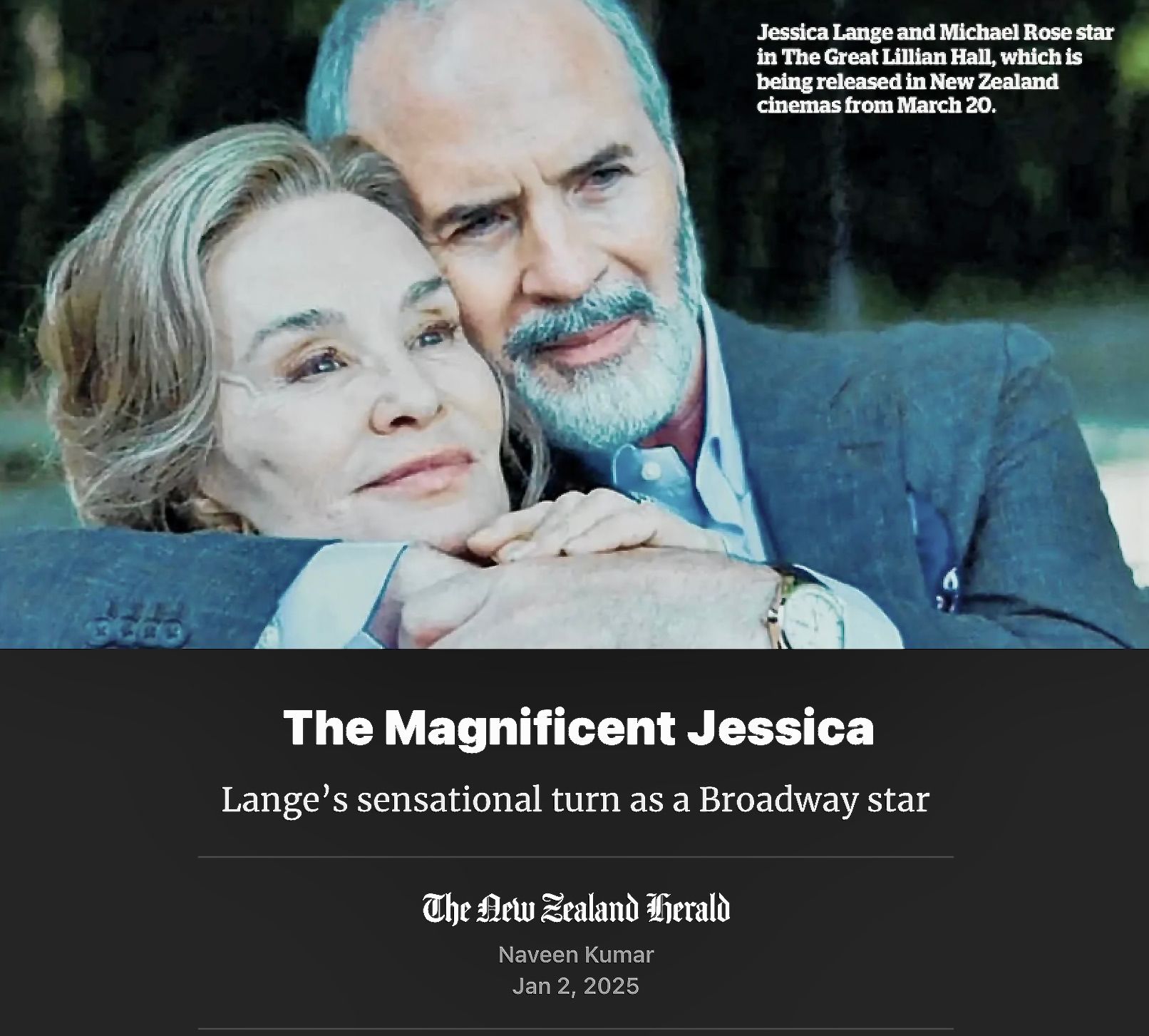 The Great Lillian Hall (Feature film)Carson (SUP) Michael Cristofer Distribution: Max